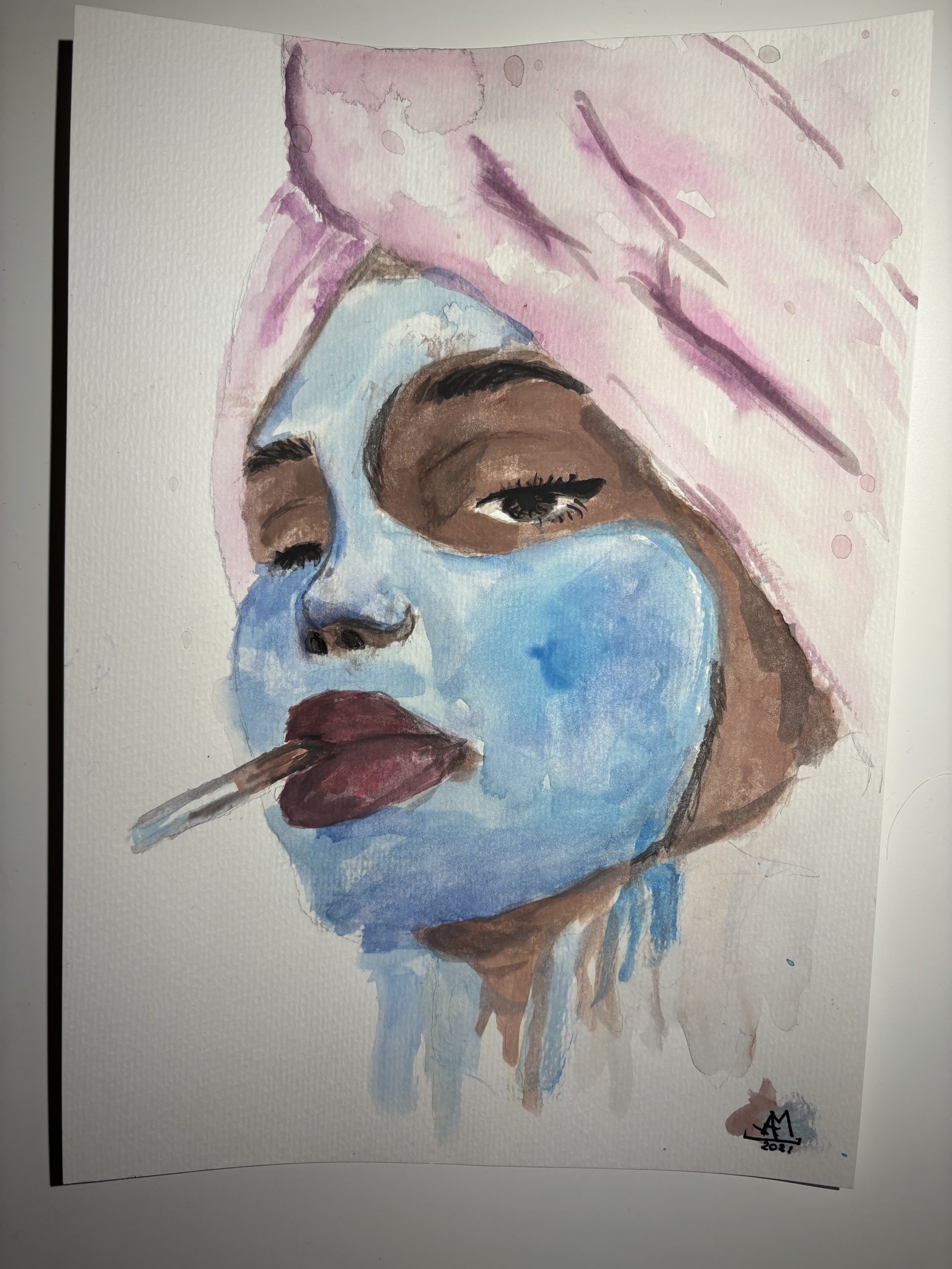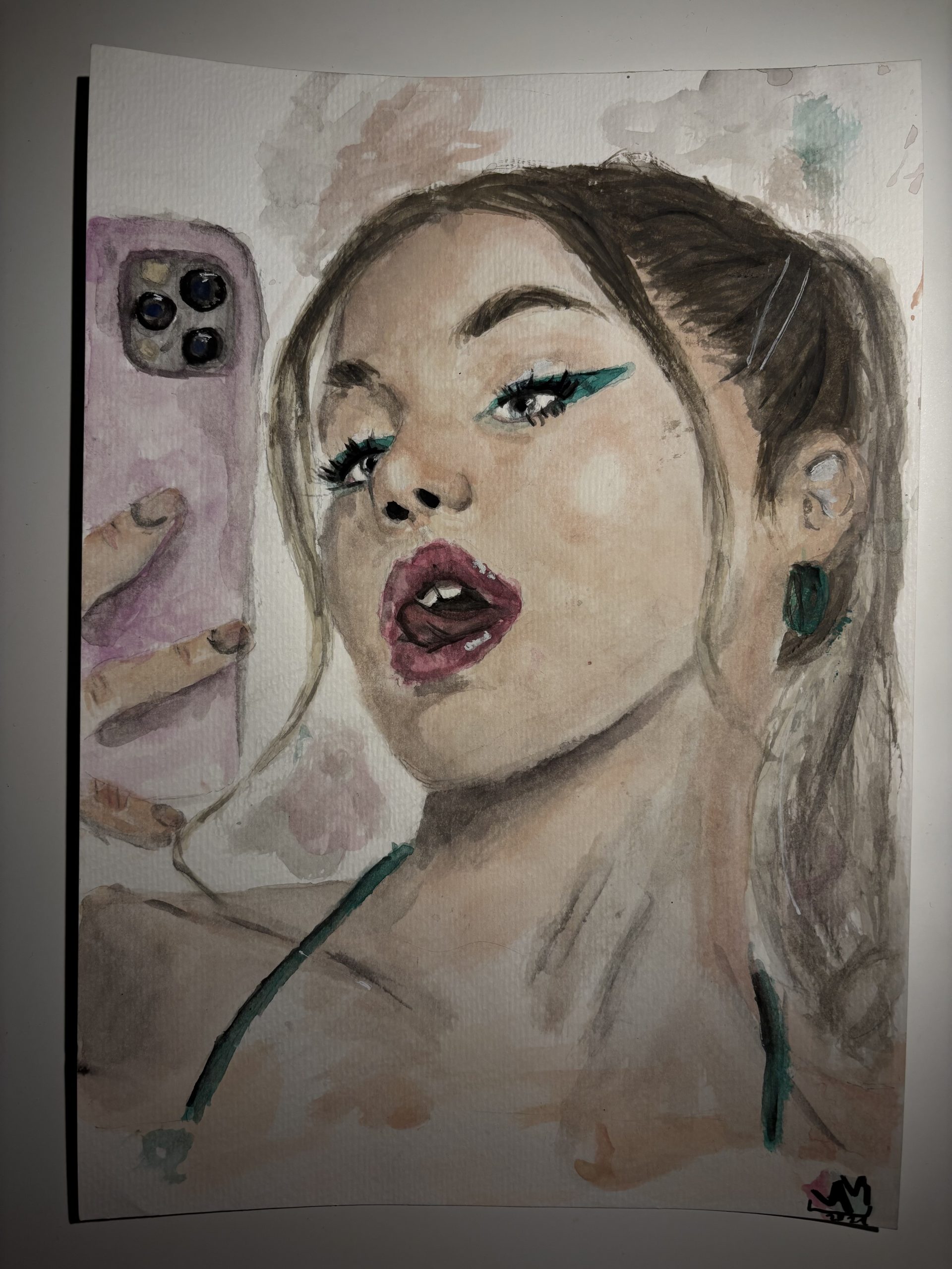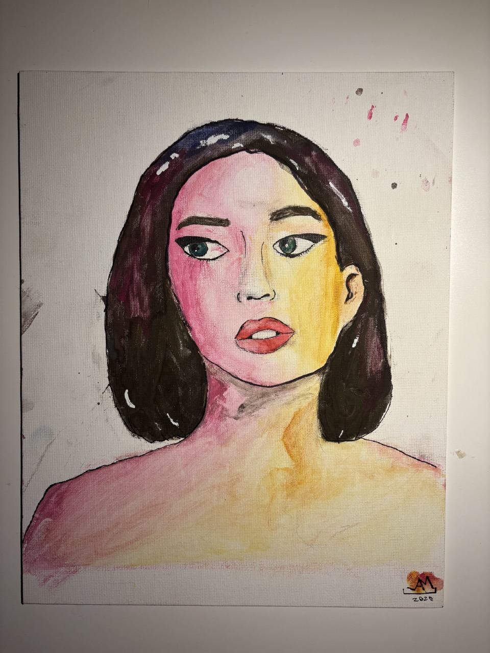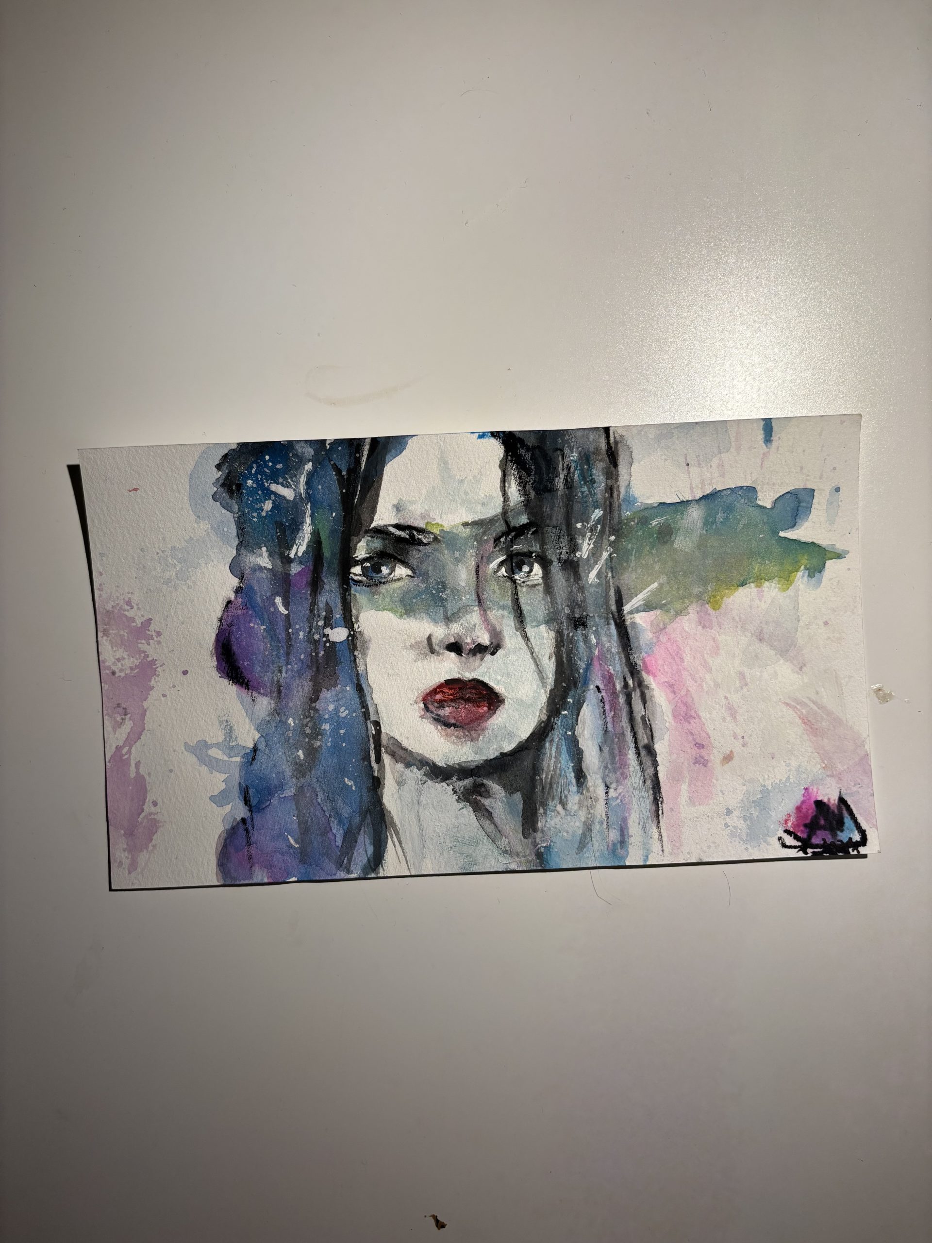 Ich male, seit ich vier Jahre alt bin – zuerst mit Bleistift, Buntstift und Wasserfarben. Mit zwölf Jahren, 2017-2018, bekam ich Aquarellfarben geschenkt und begann, meine ersten Portraits auf A4-Leinwänden zu malen. Seitdem liegt mein Fokus ganz auf Portraits, und ich habe meine Liebe zu ausdrucksstarken Gesichter entdeckt.