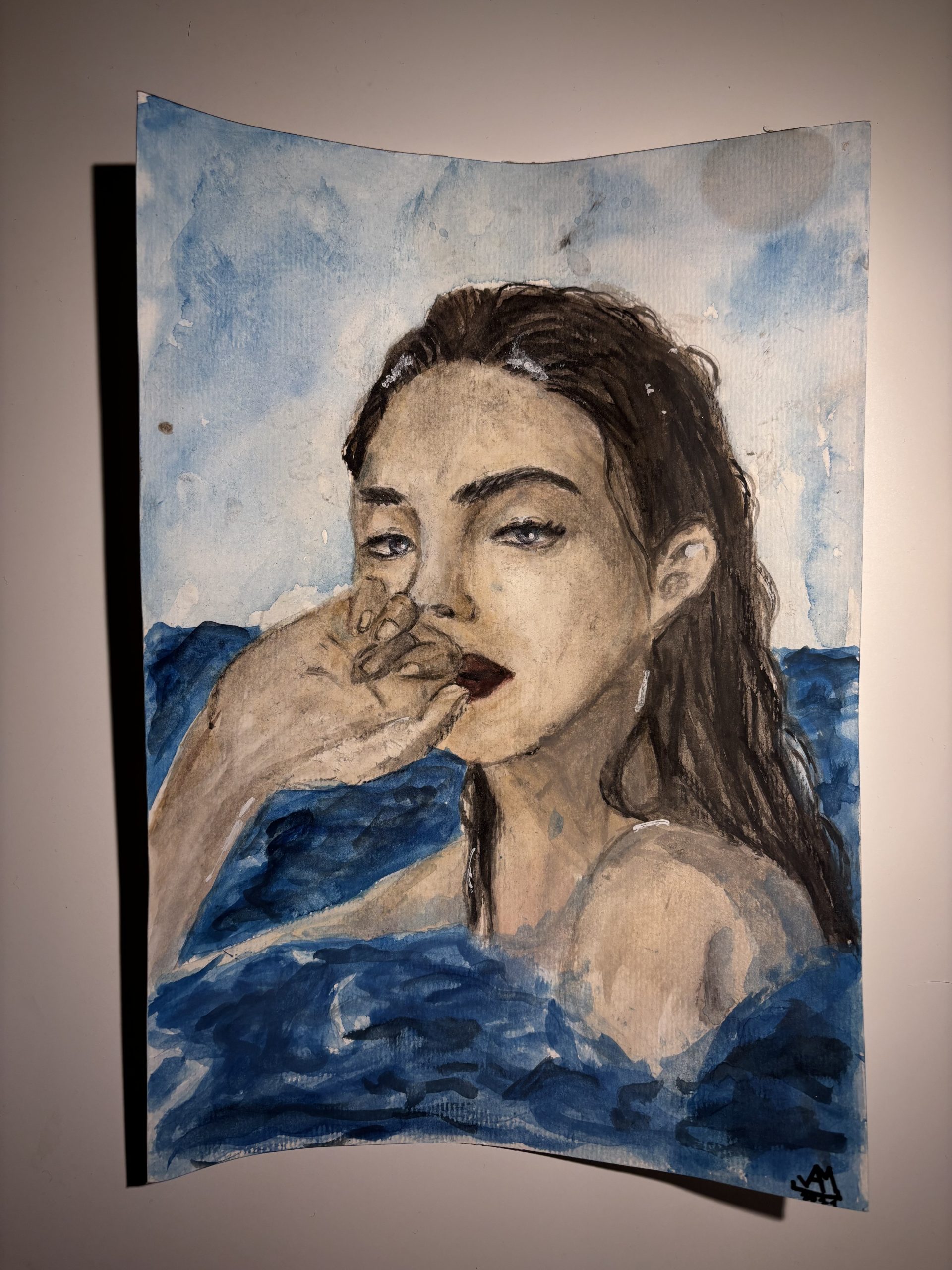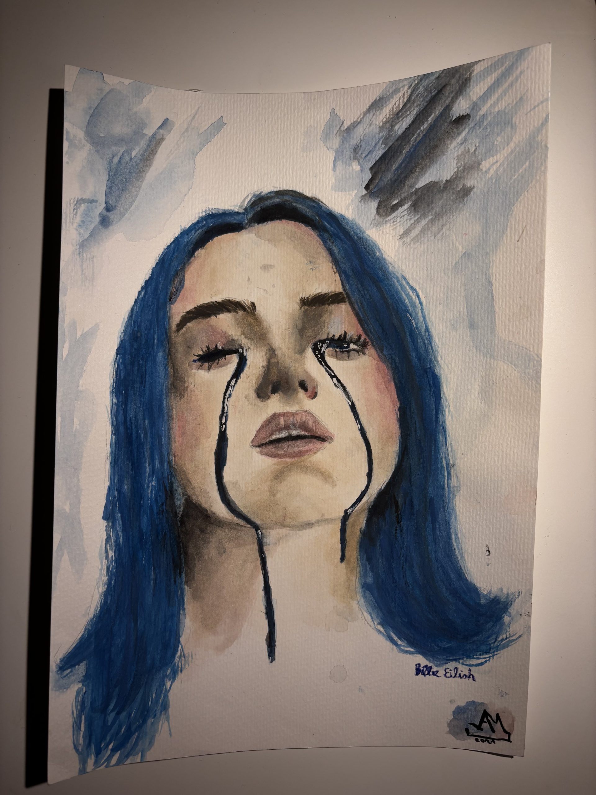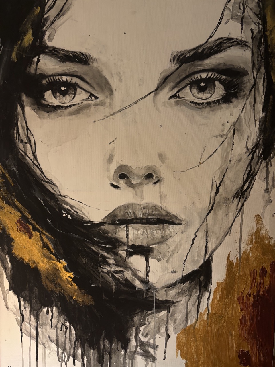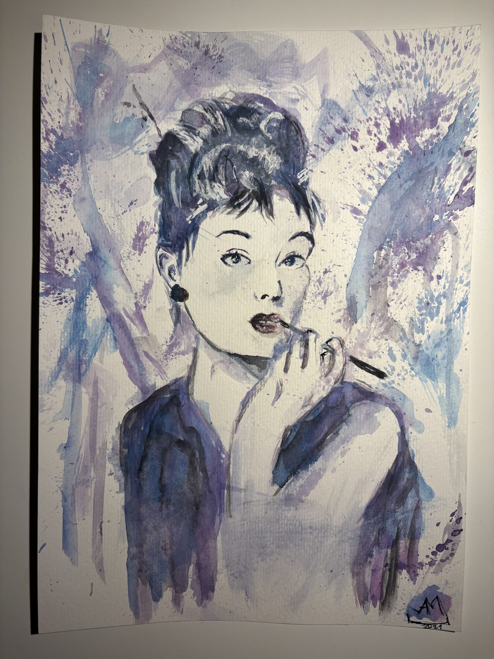 Ich male, seit ich vier Jahre alt bin – zuerst mit Bleistift, Buntstift und Wasserfarben. Mit zwölf Jahren, 2017-2018, bekam ich Aquarellfarben geschenkt und begann, meine ersten Portraits auf A4-Leinwänden zu malen. Seitdem liegt mein Fokus ganz auf Portraits, und ich habe meine Liebe zu ausdrucksstarken Gesichter entdeckt.