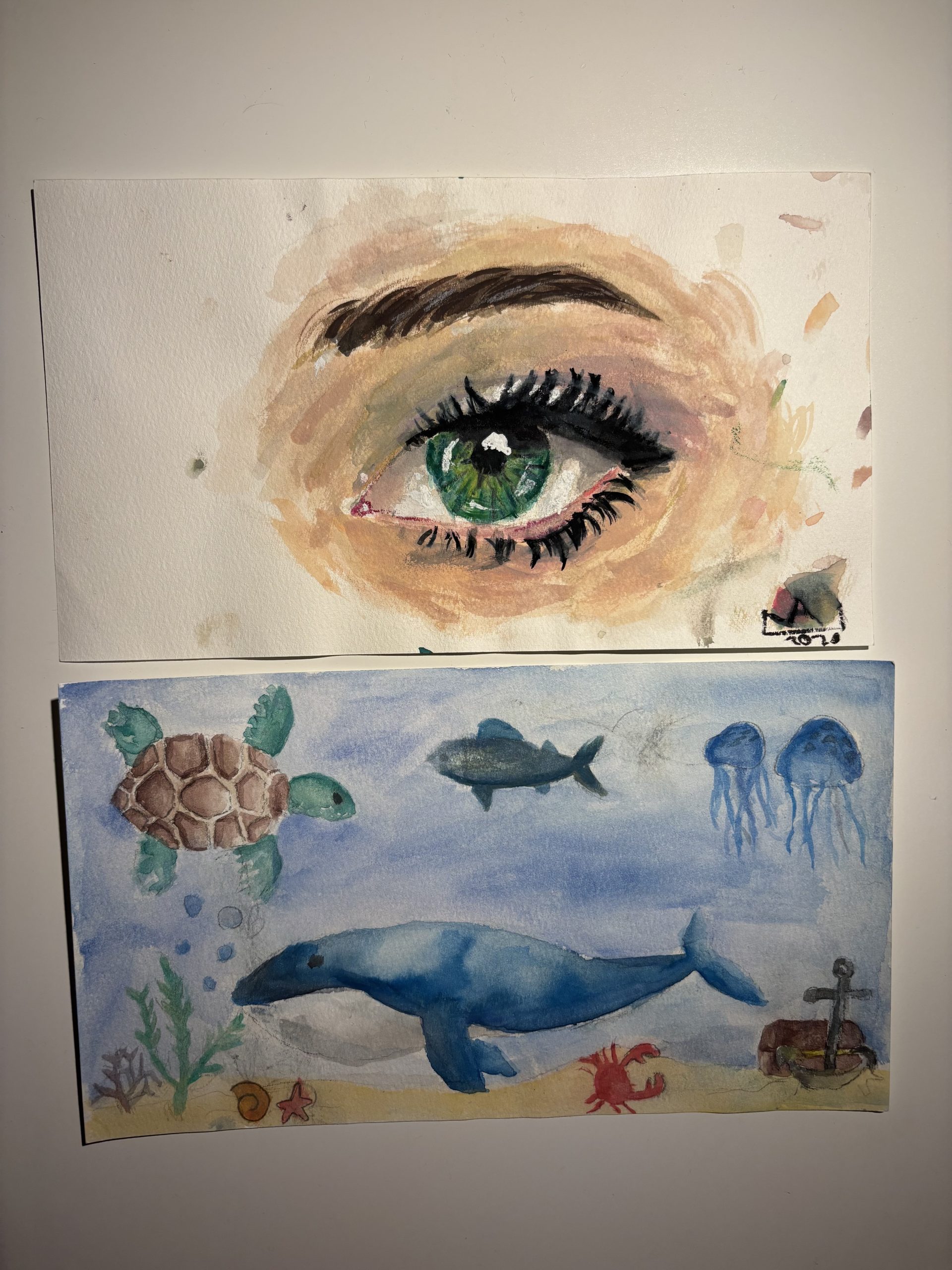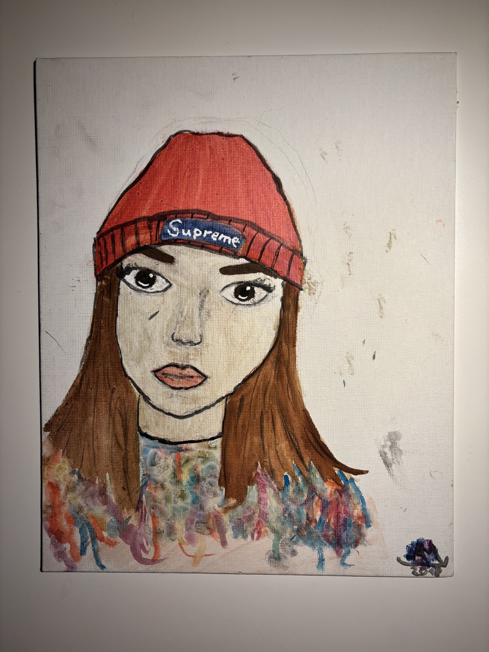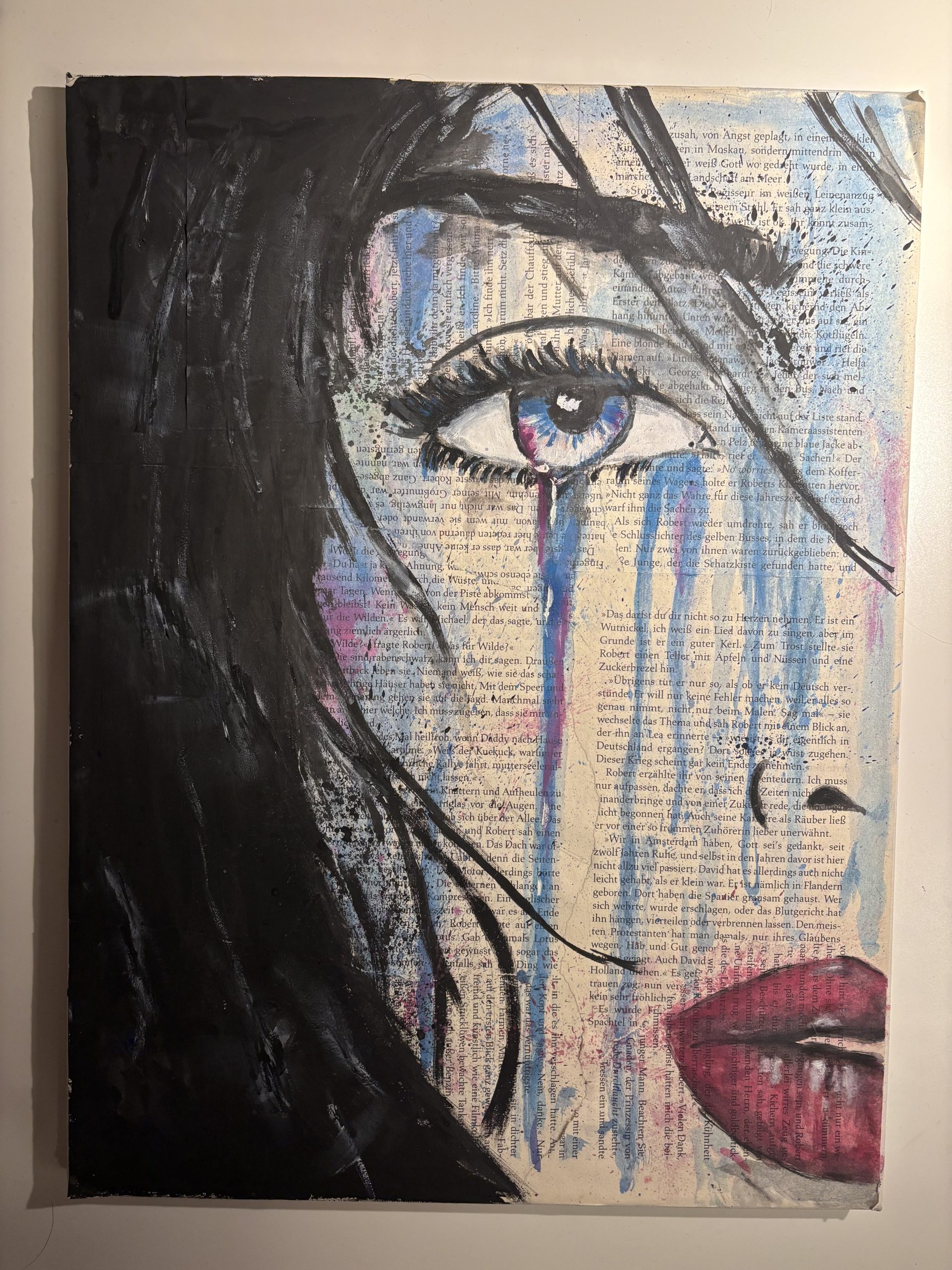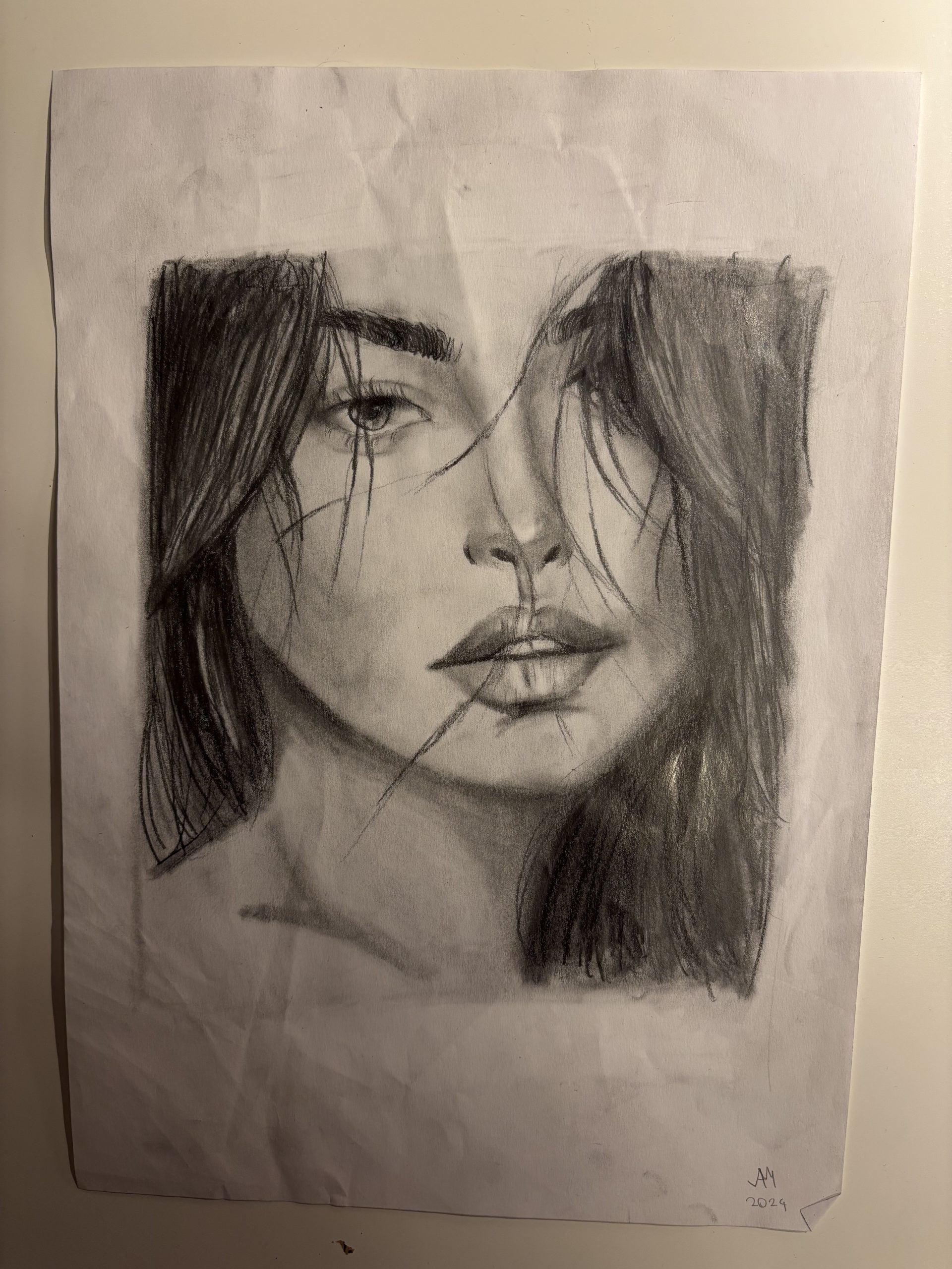 Ich male, seit ich vier Jahre alt bin – zuerst mit Bleistift, Buntstift und Wasserfarben. Mit zwölf Jahren, 2017-2018, bekam ich Aquarellfarben geschenkt und begann, meine ersten Portraits auf A4-Leinwänden zu malen. Seitdem liegt mein Fokus ganz auf Portraits, und ich habe meine Liebe zu ausdrucksstarken Gesichter entdeckt.
