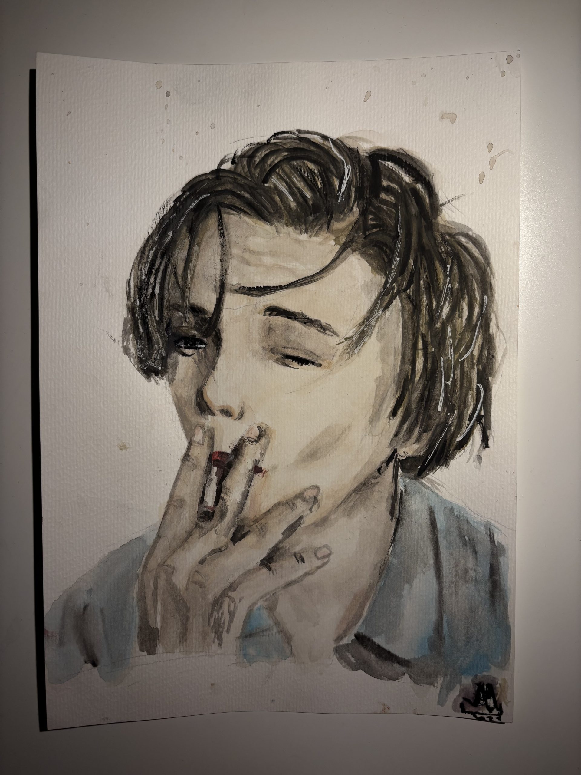 Im Jahr 2020, mit 14 Jahren, begann ich, Aquarell-Portraits auf speziellem Aquarellpapier zu malen. Diese Technik begleitete mich in den folgenden Jahren, besonders während der Corona-Zeit, in der ich viel Zeit für meine Portraits fand und meinen Stil weiterentwickeln konnte.