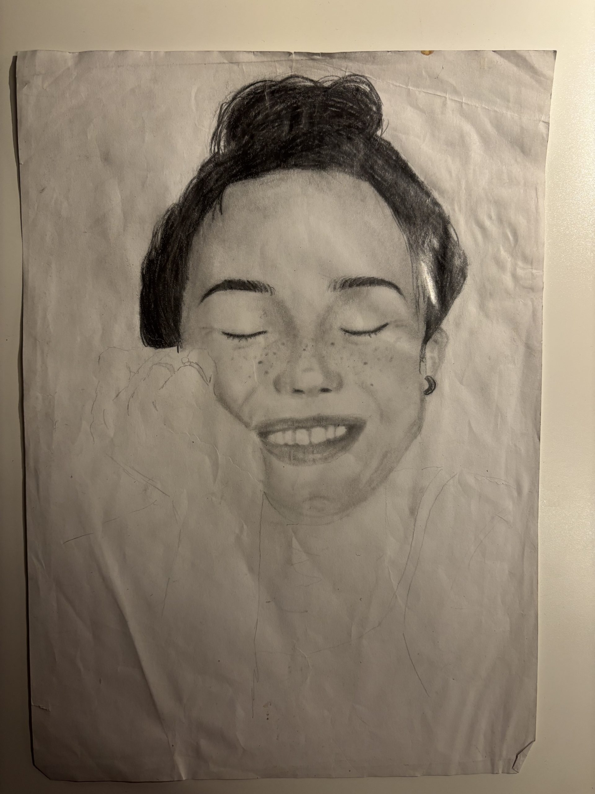 Ende 2021 bis Anfang 2022 habe ich eine Pause vom Zeichnen eingelegt, die ungefähr drei bis vier Jahre dauerte. 2025 habe ich dann wieder angefangen zu malen – diesmal auf großen Leinwänden. Alles begann mit dem Wunsch meiner Mama nach einem Portrait für die Küche, und ich wollte einfach mal ausprobieren, wie es auf so einer Größe funktioniert. Das Bild hat dann so vielen gefallen, dass sich nach und nach auch andere Familienmitglieder Portraits gewünscht haben. Ab da ging es weiter: Ich habe mich immer mehr auf große Portrait-Leinwände fokussiert und beschlossen, diese Reise fortzusetzen – deshalb habe ich mich entschieden, meine Bilder nun online auf meiner eigenen Webseite zu zeigen.